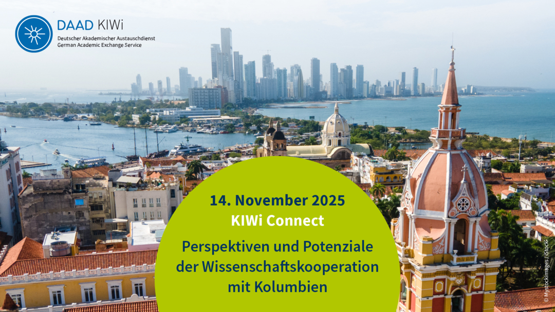 In dem Online-Seminar „KIWi Connect: Perspektiven und Potenziale der Wissenschaftskooperation mit Kolumbien“ geben der Leiter der DAAD-Außenstelle in Bogotá, Dr. Reinhard Babel, sowie erfahrende Expert*innen aus Kolumbien und Deutschland aktuelle Einblicke und wertvolle Tipps zur Anbahnung und Umsetzung von Kooperationsprojekten mit kolumbianischen Partnern.