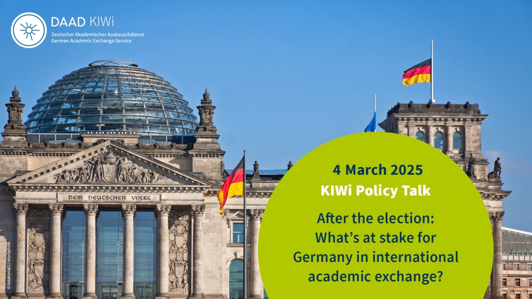 These and other questions will be addressed in the KIWi Policy Talk “After the election: What's at stake for Germany in international academic exchange?”. International experts on German elections and politics will discuss current opportunities and challenges following the Bundestag election on 23 February 2025.
